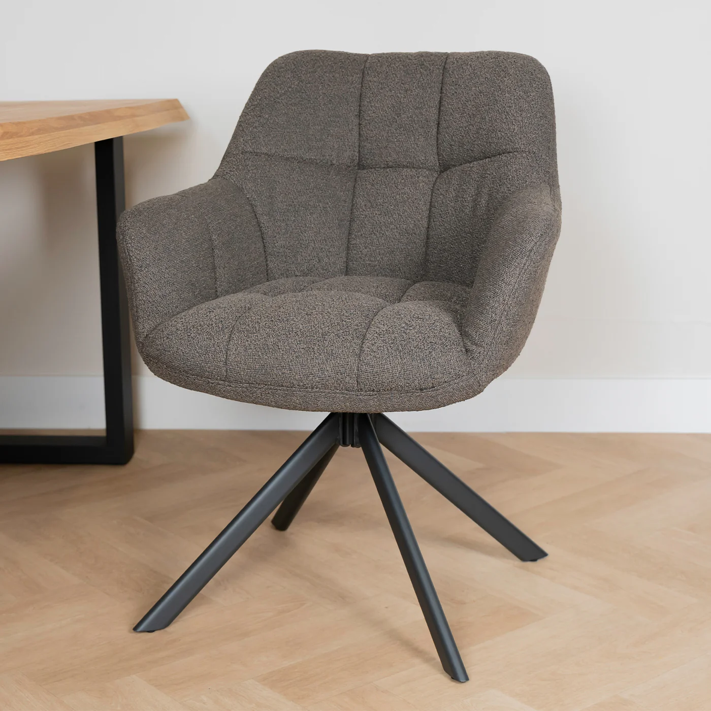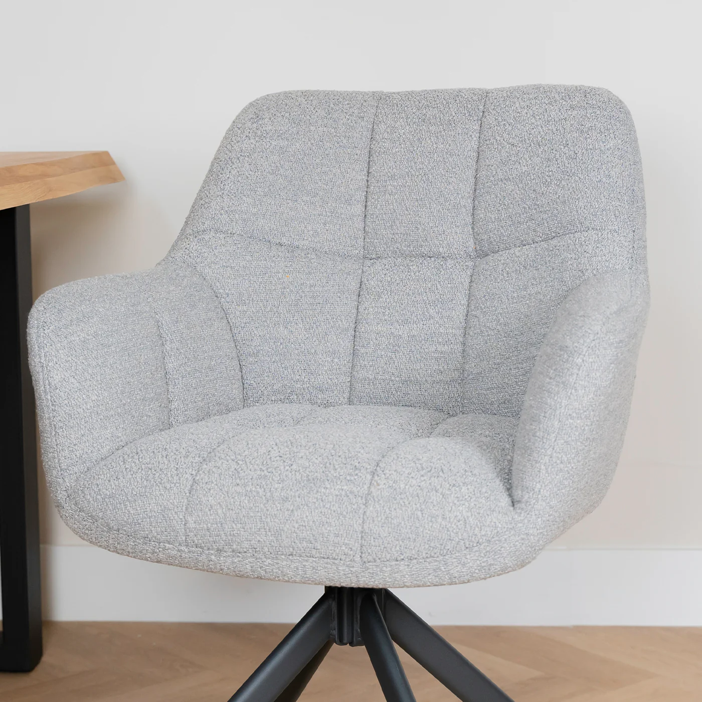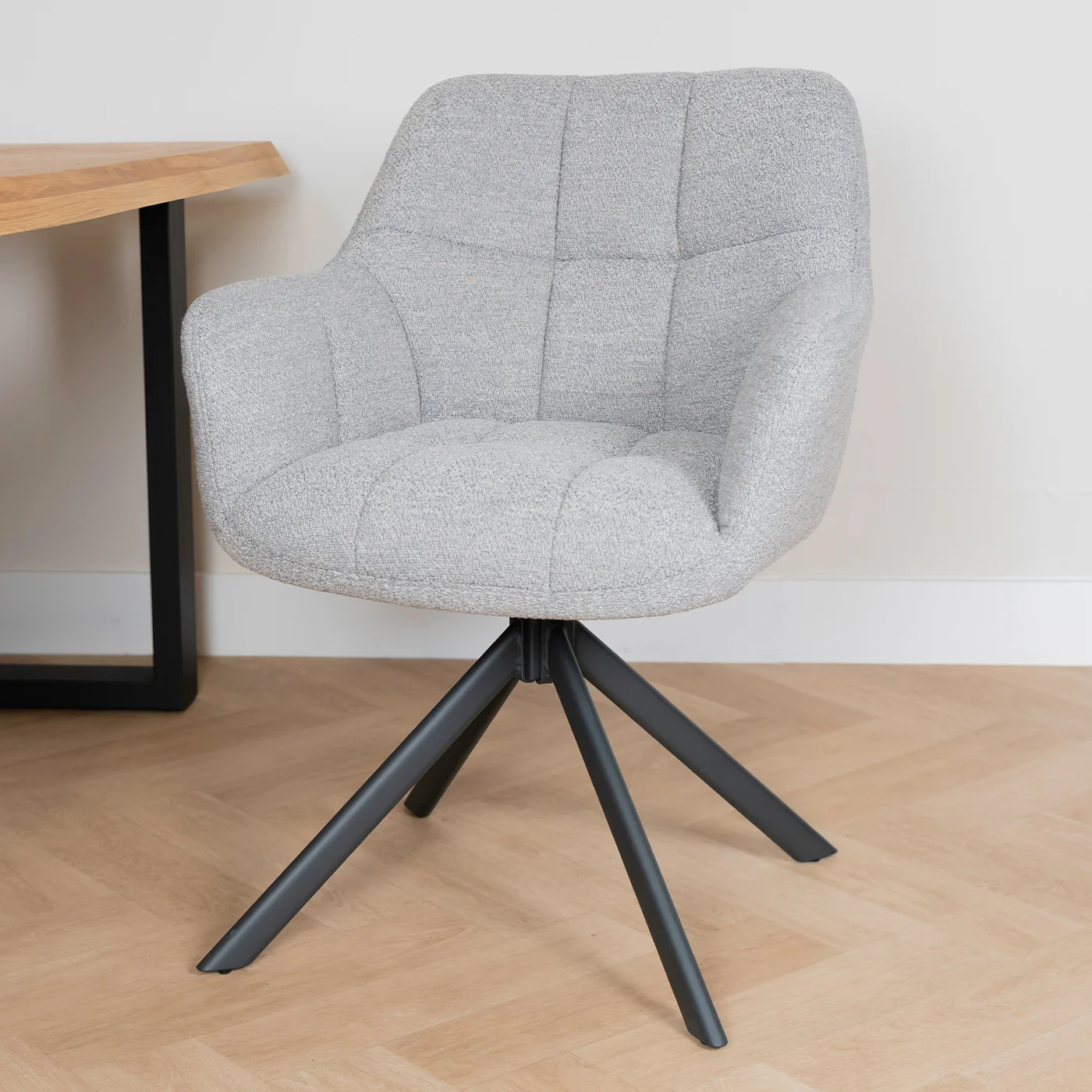 Eetkamerstoel Alba is een zeer comfortabele eetkamerstoel uitgevoerd in de zeer trendy Bouclé stof. Deze stof is zacht en warm en geeft uw interieur een zeer moderne en chique uitstraling.