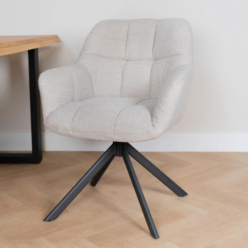 Deze robuuste en comfortabele eetkamerstoel biedt optimaal zitcomfort dankzij de hoge rugleuning en aangename armleuningen. Ideaal voor extra ondersteuning, zelfs voor langere mensen.