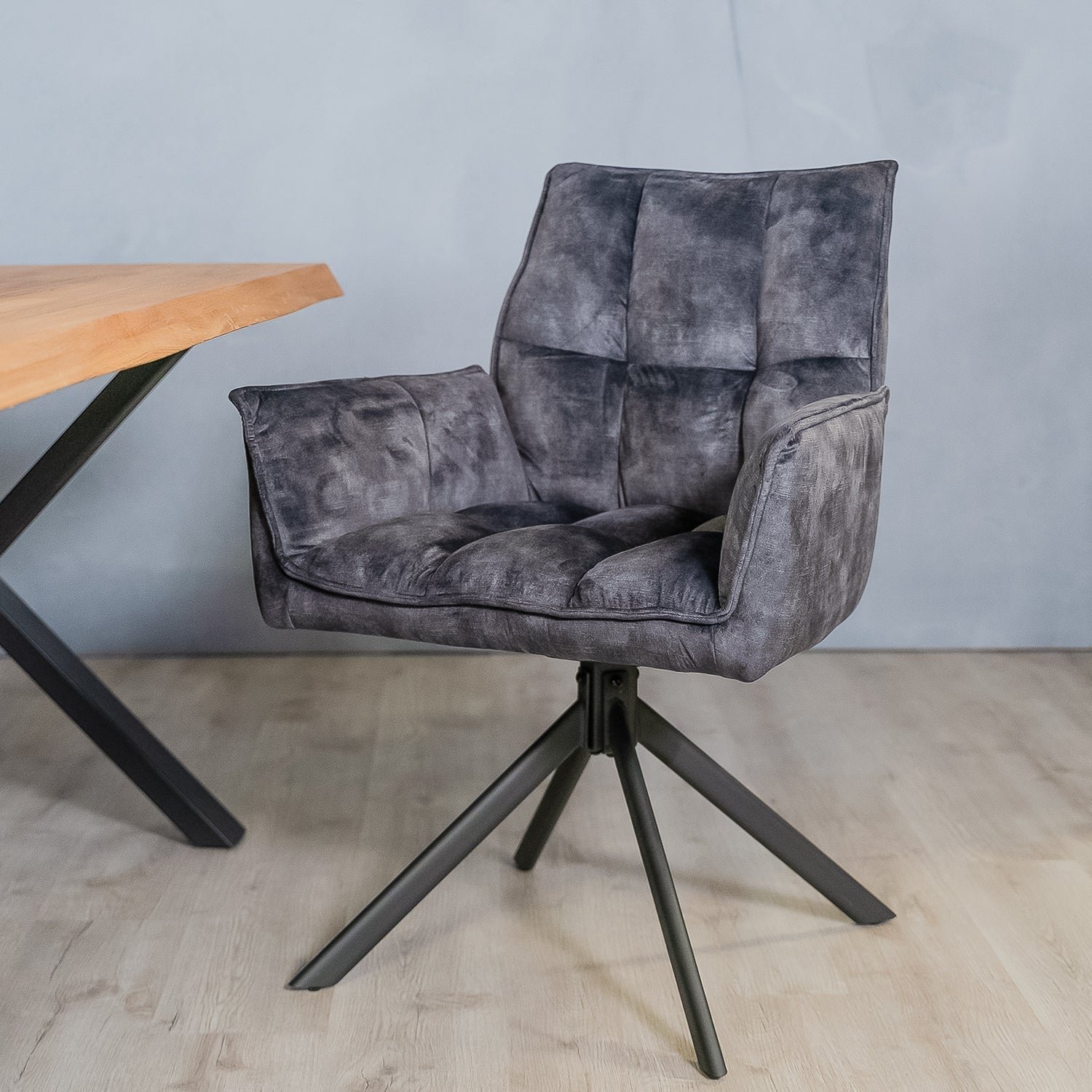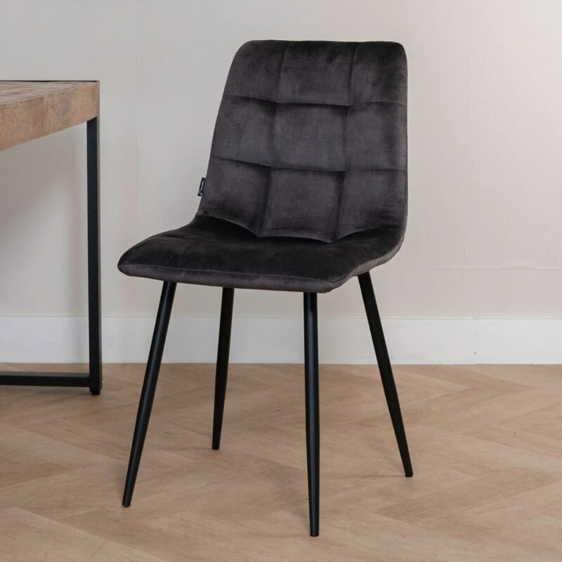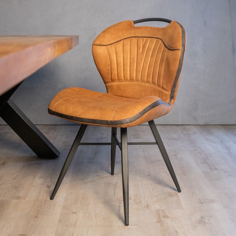 De stoel is voorzien van speciaal schuim in zowel de zitting als de rugleuning, waardoor u ook tijdens lange diners of spelletjesavonden comfortabel zit. Verkrijgbaar in drie stijlvolle kleuren: legergroen, antraciet en cognac, perfect voor een modern of industrieel interieur.
