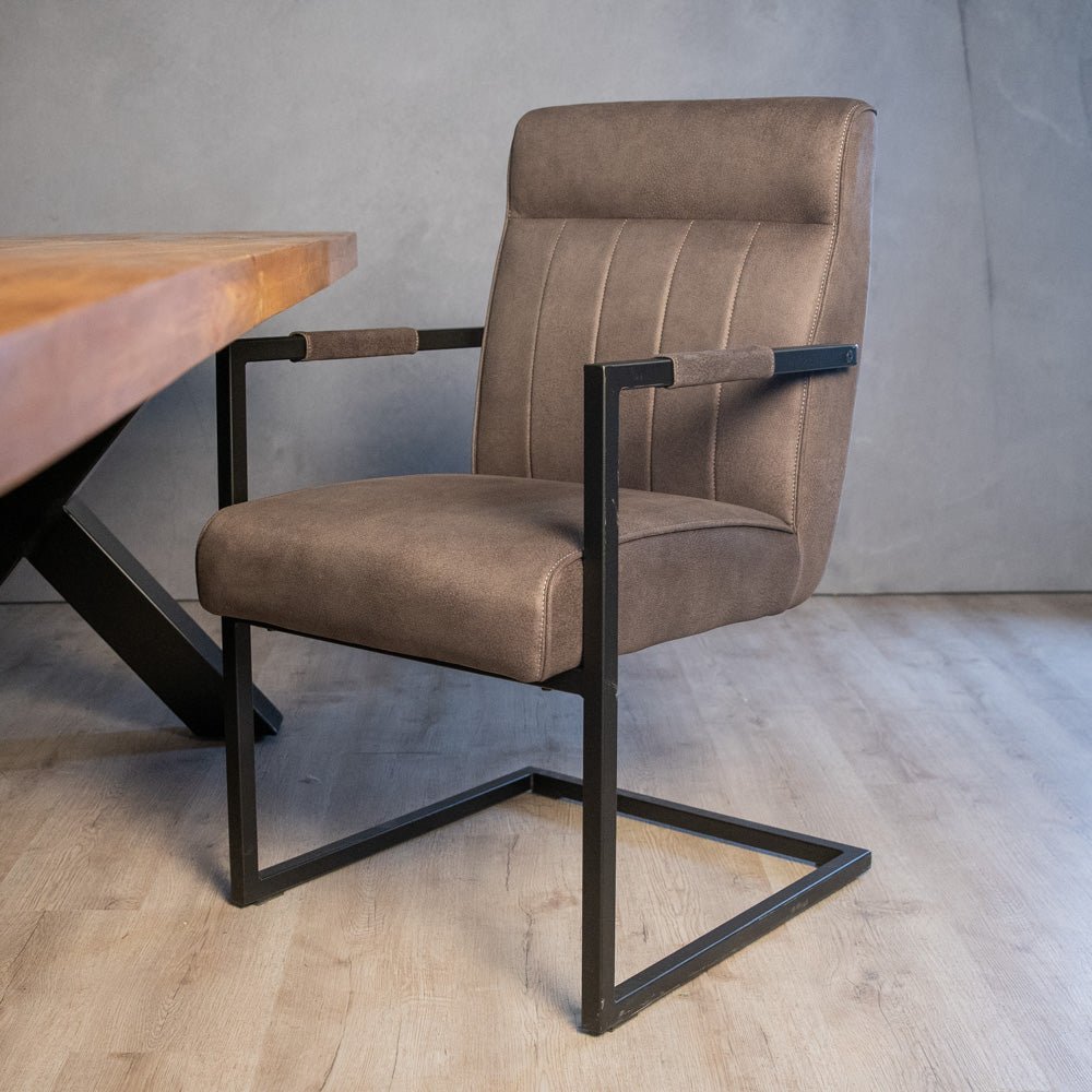 Deze robuuste en comfortabele eetkamerstoel biedt optimaal zitcomfort dankzij de hoge rugleuning en aangename armleuningen. Ideaal voor extra ondersteuning, zelfs voor langere mensen.
