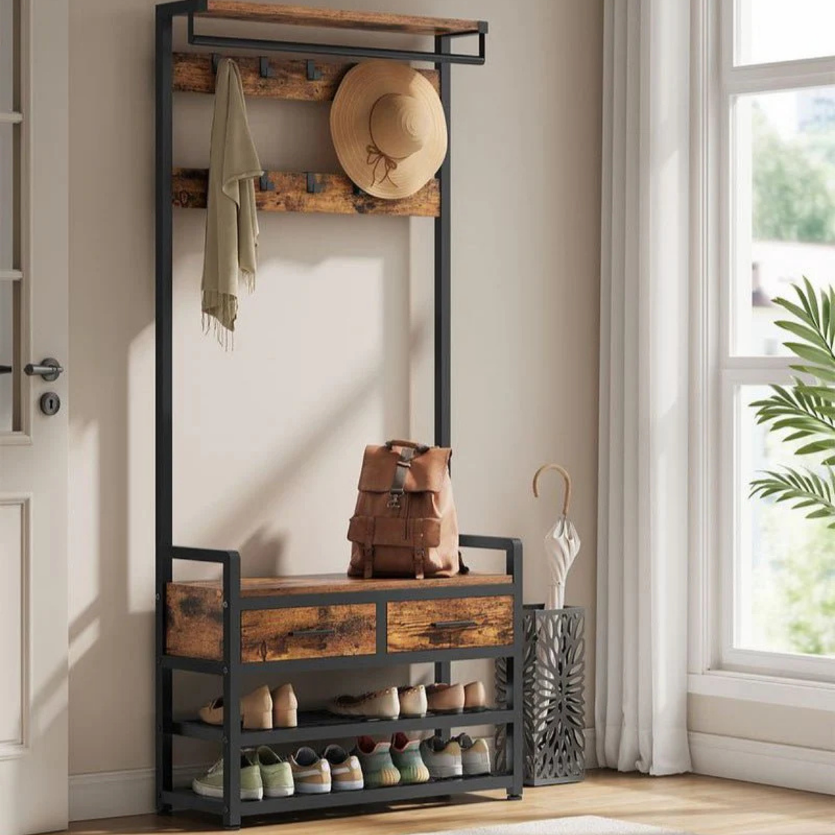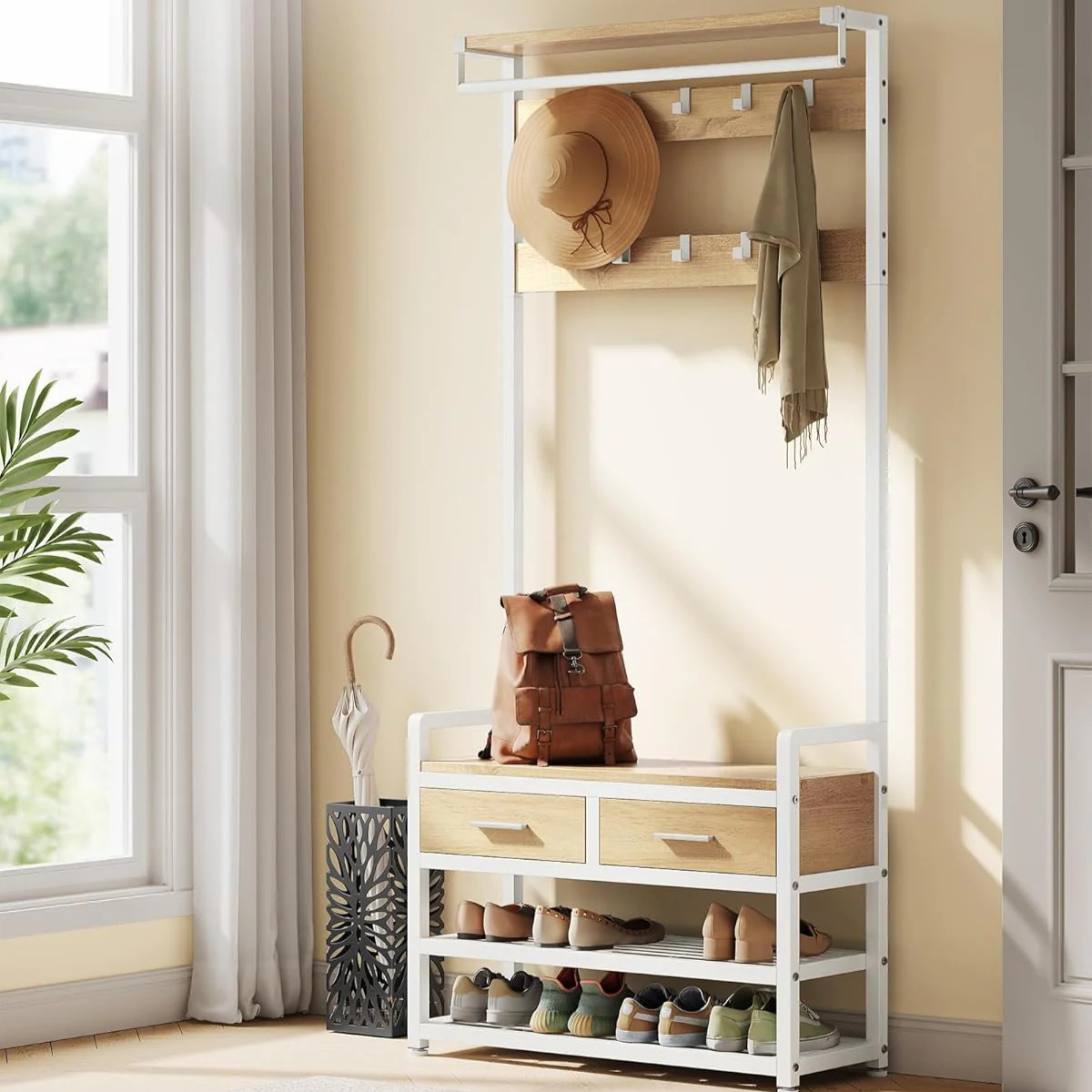 ✔ 6-in-1 ontwerp: kapstok, schoenenrek, zitbank, lades, kledingroede en plank