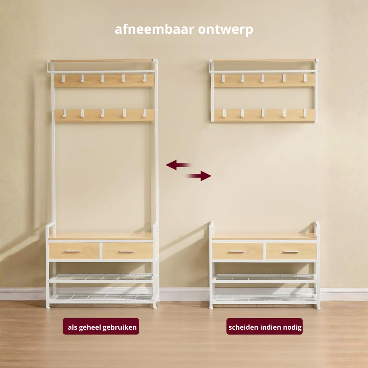 Kapstok met Schoenenrek, Lades en Kledingroede – 6-in-1 Halmeubel