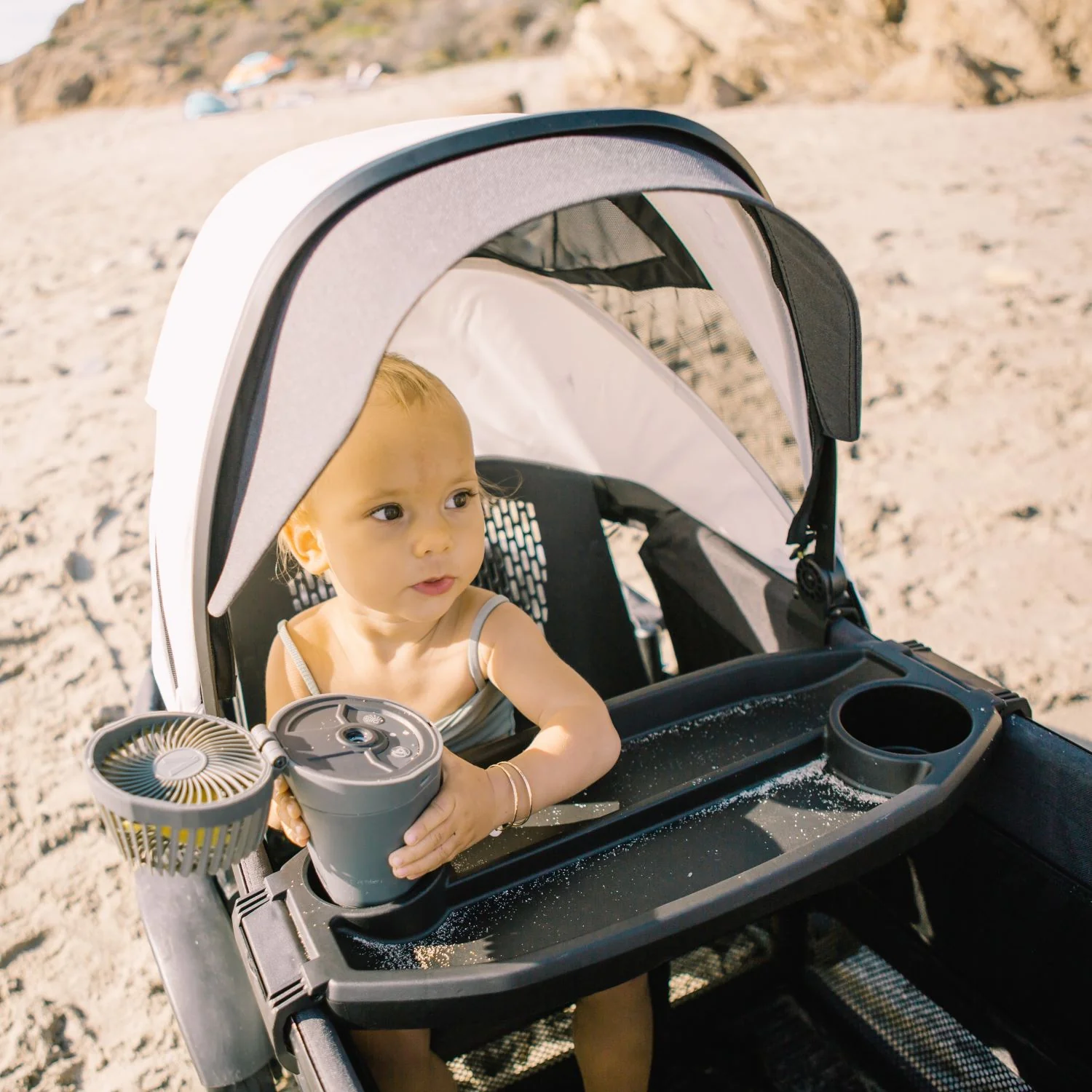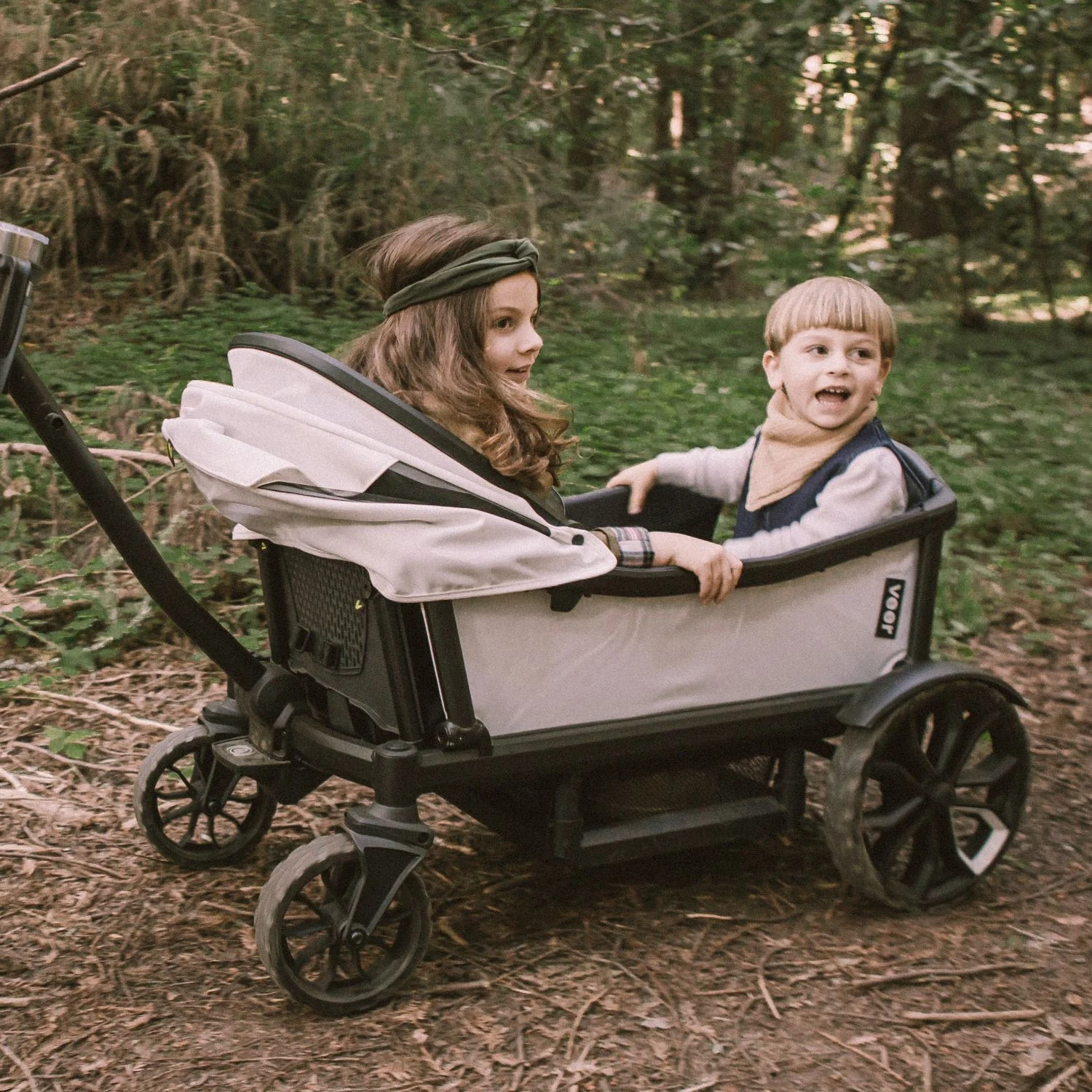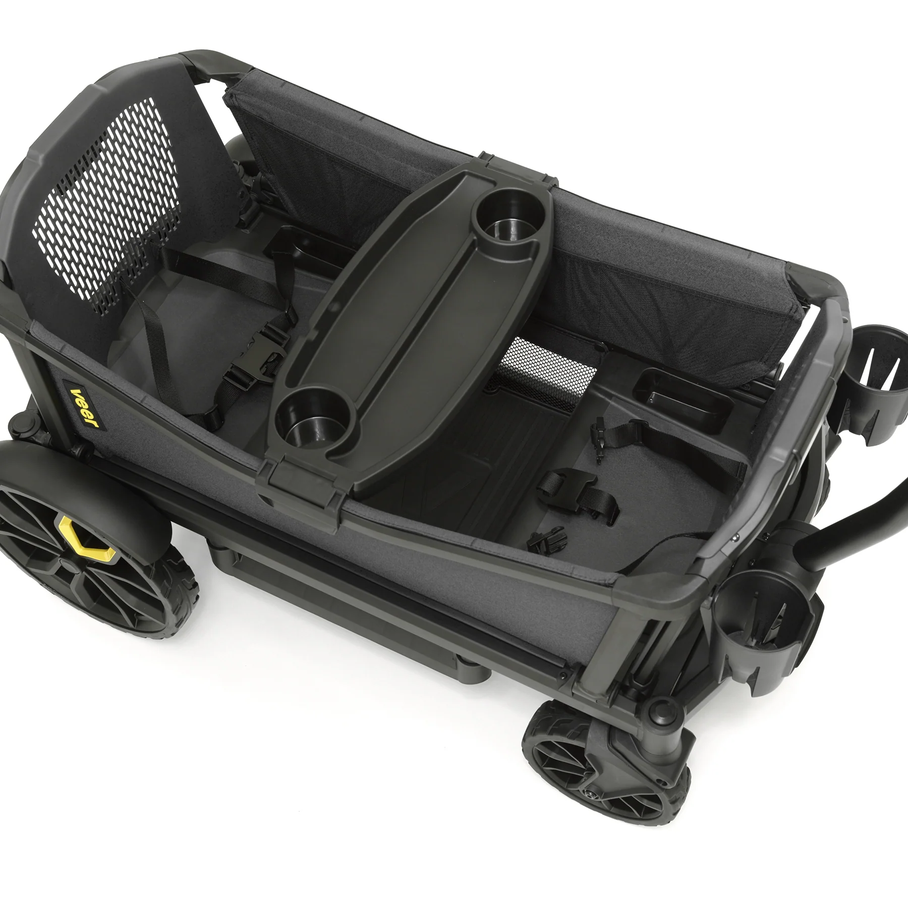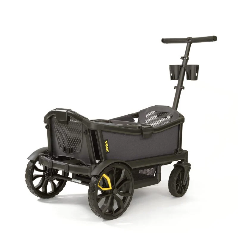De Veer Cruiser is ’s werelds eerste combinatie van bolderwagen en kinderwagen voor elk terrein. Hij combineert het gevoel, de functionaliteit en de veiligheid van moderne premium kinderwagens met het klassieke plezier van een bolderwagen. De Veer Cruiser is uitgerust met 2 bekerhouders en een eettafel.