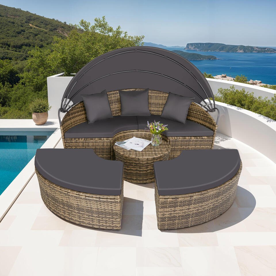 Erg tevreden met de zitbank. Past er makkelijk met 3 man in en is zo opgezet.